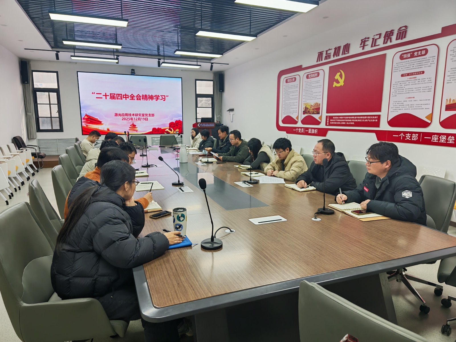 12月19日,激光應(yīng)用技術(shù)研究室黨支部組織召開黨的二十屆四中全會精神專題學(xué)習(xí)會。黨支部書記李朝輝主持會議,支部全體黨員、入黨積極分子參會學(xué)習(xí)。
